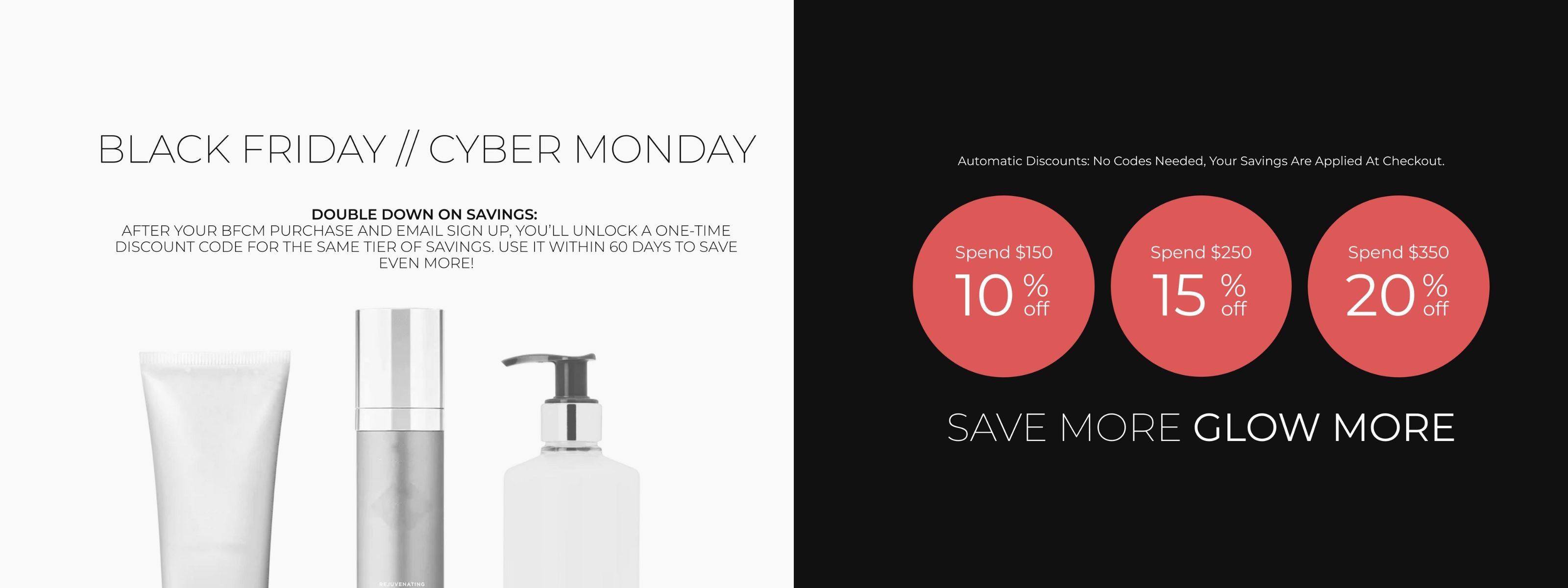BONUS! A Special Perk for Repeat Shoppers to Double Down on Savings: After your Black Friday purchase with an email sign up, you’ll UNLOCK a one-time BONUS discount code emailed to you for the same tier of savings. Use it within 60 days to save even more!